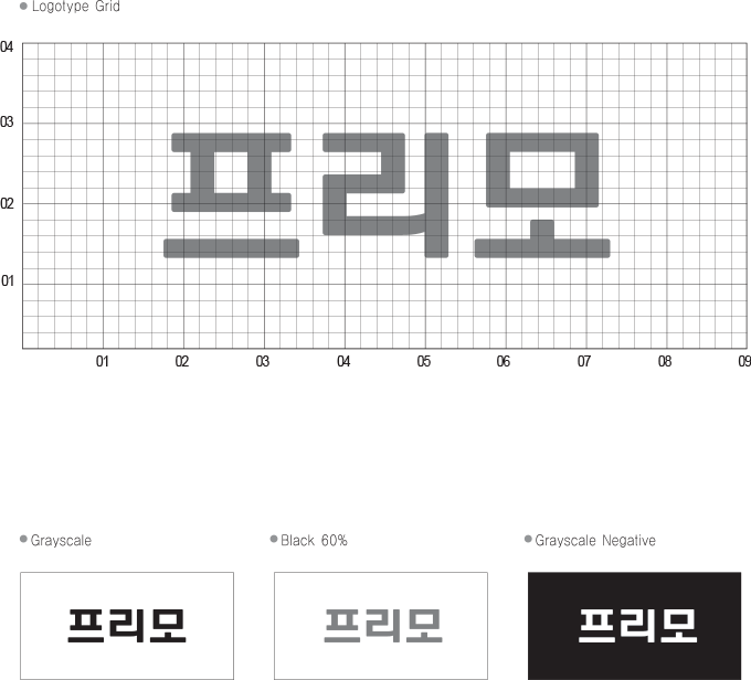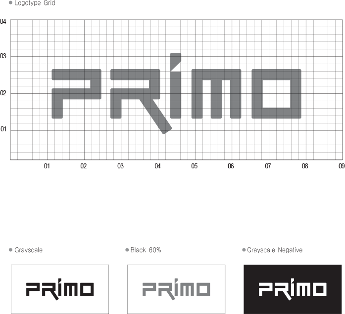 로고타입은 프리모 CI의 기본 요소로서 프리모의 이미지를 대내외 표출하는 모든 시각 커뮤니케이션의 핵심이 되는 대표적 상징물이다.